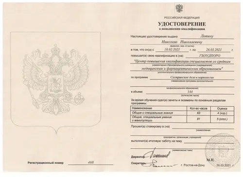 Центр повышения квалификации специалистов со средним медицинским и фармацевтическим образованием (Сестринское дело в наркологии)